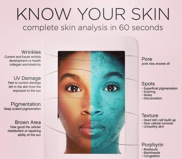 Se analiza la piel con Microscopio, medidor de Hidratación y Nutrición, lámpara de luz Negra y Medidor de pH.
